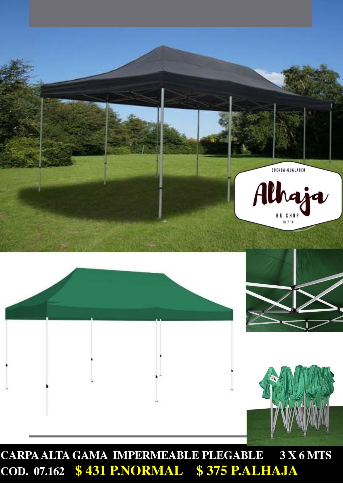 CARPA PLEGABLE VARIOS COLORES 3X6