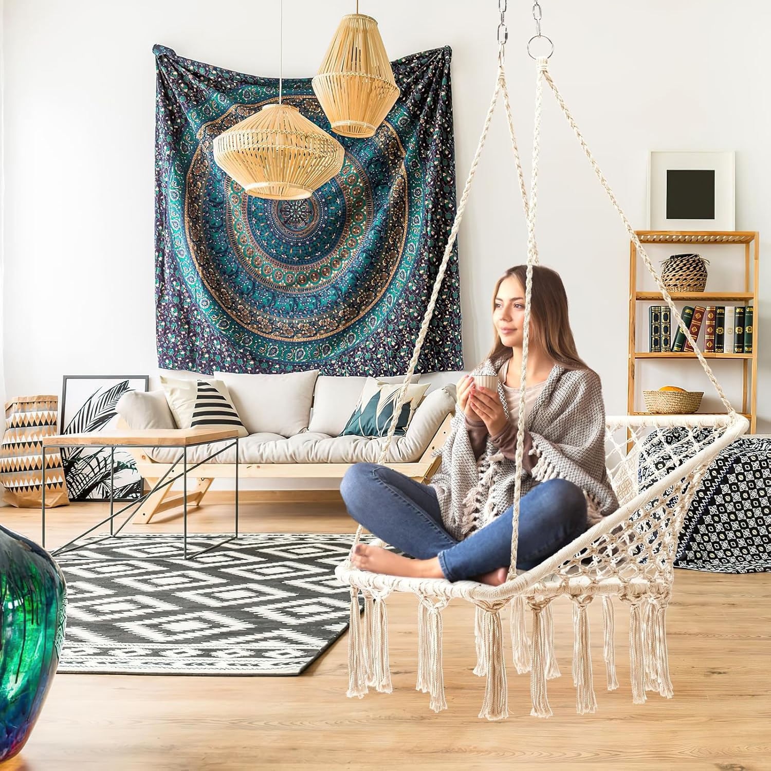 SILLA COLGANTE CUADRO TEJIDA EN HILO ALGODON MACRAME