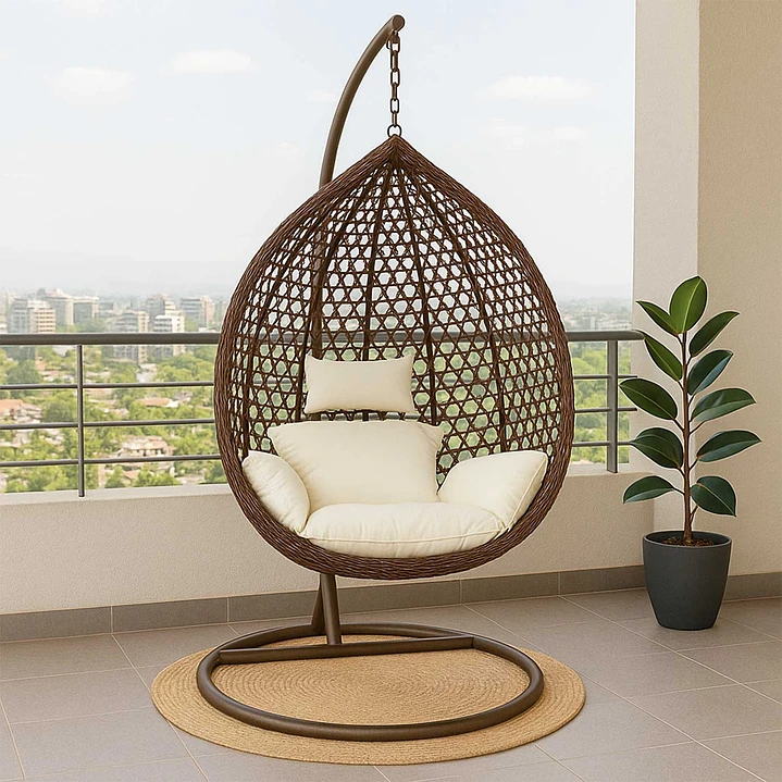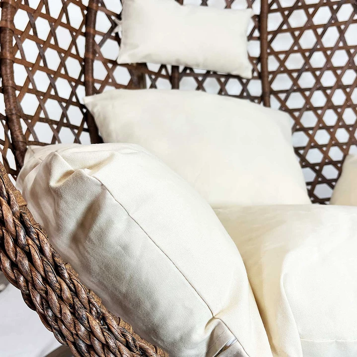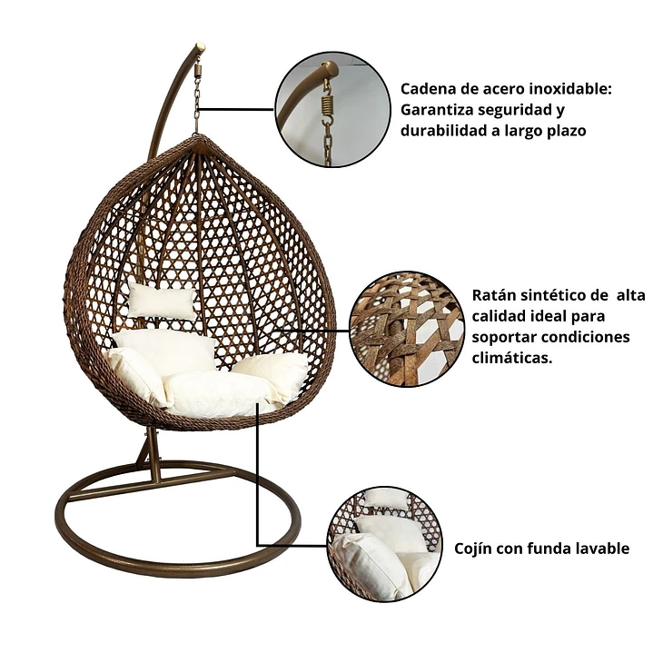 SILLA COLGANTE NIDO HUEVITO CAFE TIPO RATTAN CON BASE IMPORTADA