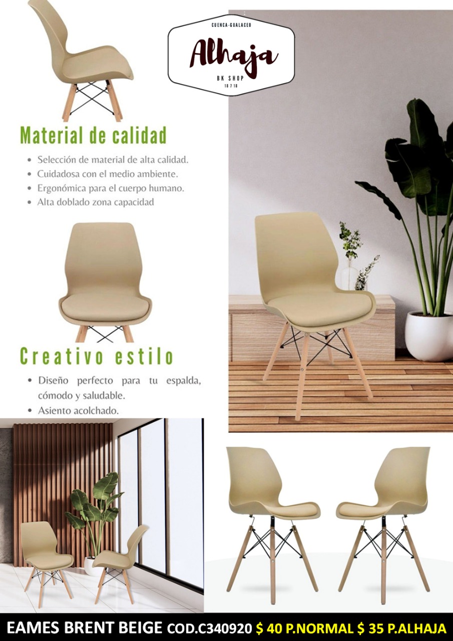 SILLA EAMES BEIGE BRENT ACOLCHADO ASIENTO