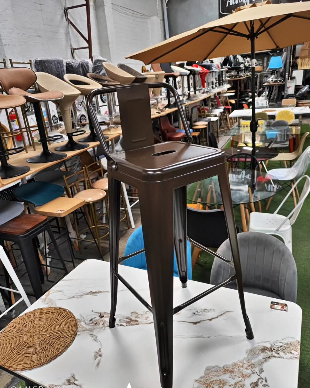 TABURETE HAPPY POLIRATAN CAFE BASE NEGRA