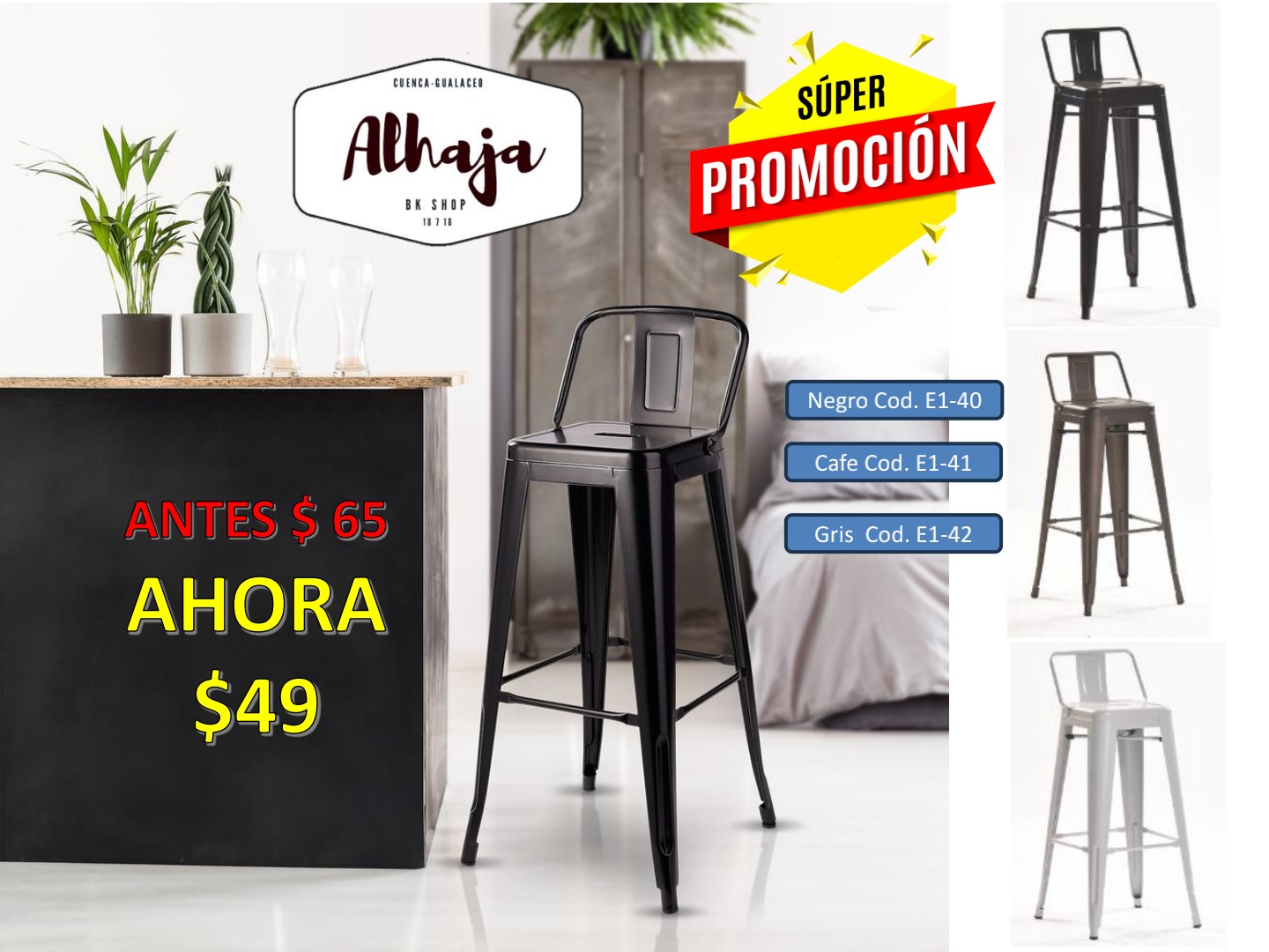 TABURETE BAR GRANADA NEGRO 65 CM