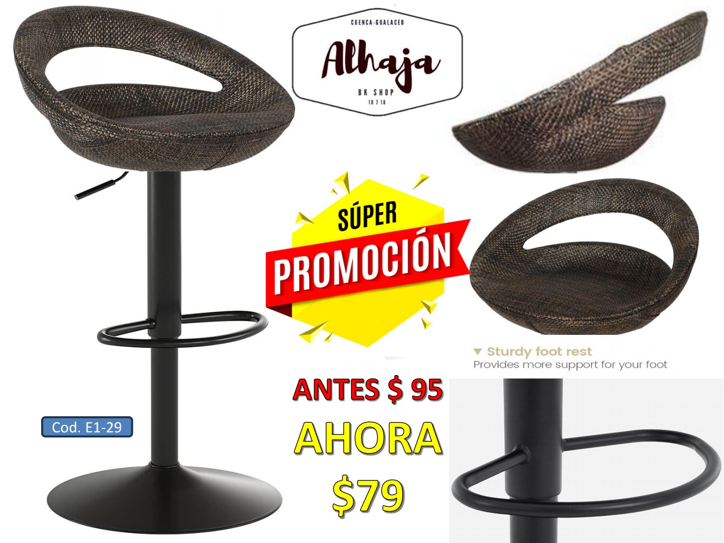 TABURETE ENJOY POLIRATAN CAFE BASE NEGRA