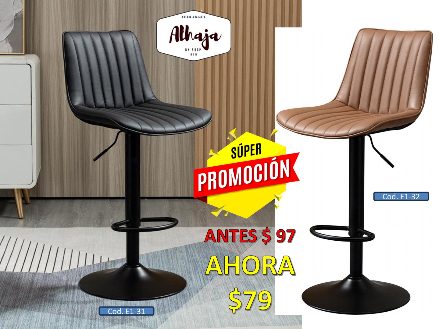 TABURETE CAFE HY 5822 BASE NEGRA