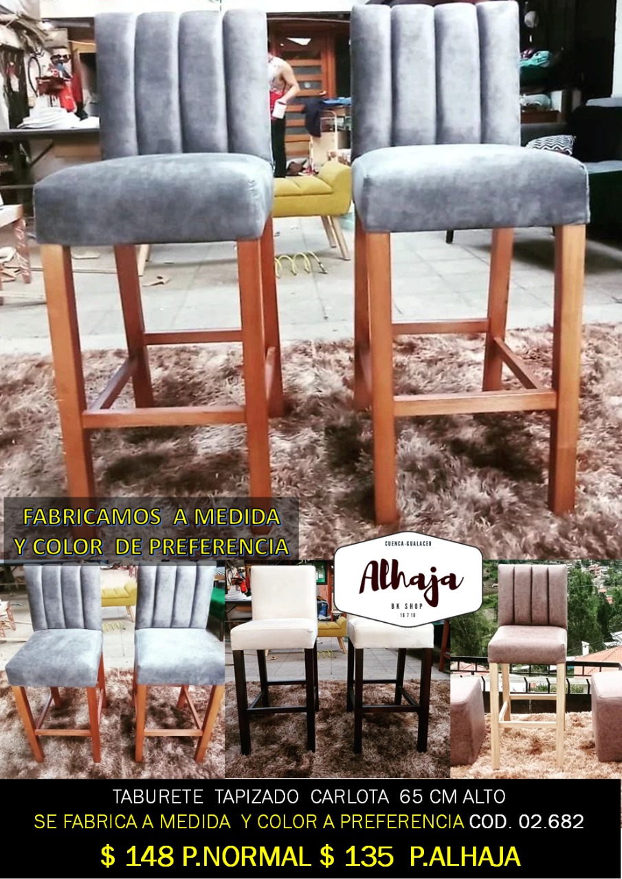 TABURETE TAPIZADO CARLOTA 65 CM ALTO SE FABRICA A MEDIDA Y COLOR A PREFERENCIA